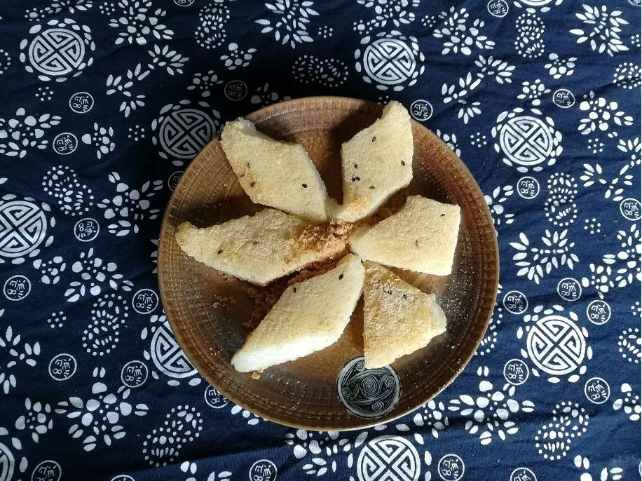 李大同双炊糕是瑞安糕点名师李瑞庆于清代光绪年间创制的,距今已有100多年的历史。它用糯米粉加白糖或红糖拌匀过筛,撒上桂花,成型切块,经两番炊制而成。捏一块双炊糕,入口,糯米的细腻软韧配上白糖香甜的味道,在嘴里化开,一块绝对不过瘾。