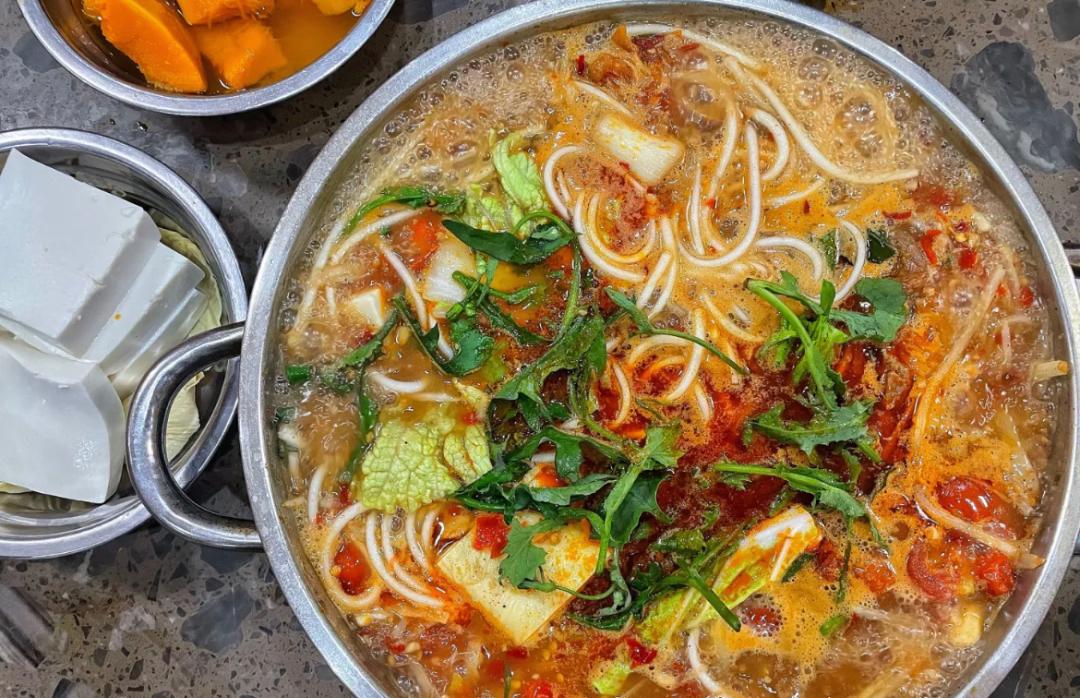 他们家的汤底每天都是采用本地小番茄熬制,还选用当地特色的黄牛肉和酸笋哦。