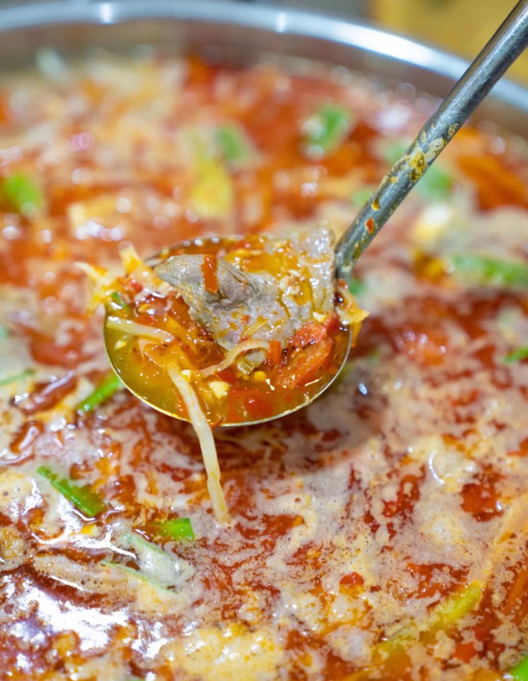 生牛肉煮起来更加鲜嫩,不用蘸料,就已经又酸又辣又上头,好吃到要连说三遍:好吃绝了!
