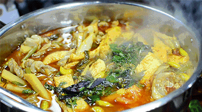 一锅独具风格的酸辣锅底,将炸制好的鱼肉,搭配上酸笋,在蒜白、辣椒等调味料下,熬煮即可出锅。酸笋清爽开胃,而鱼肉更是鲜嫩可口,是万峰林最不能错过的美食哦。