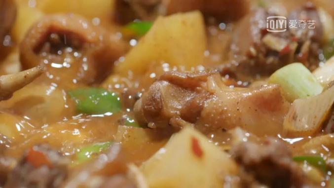 新鲜鸡肉直接过油生炒,能听到鸡皮炒到炸裂的声音。在新添了柴火的土灶上慢慢炖煮,用这种柴火土灶台烧出来的鸡尤其入味,再加上配菜,一锅鲜鸡喷香诱人,填补饥饿的灵魂。