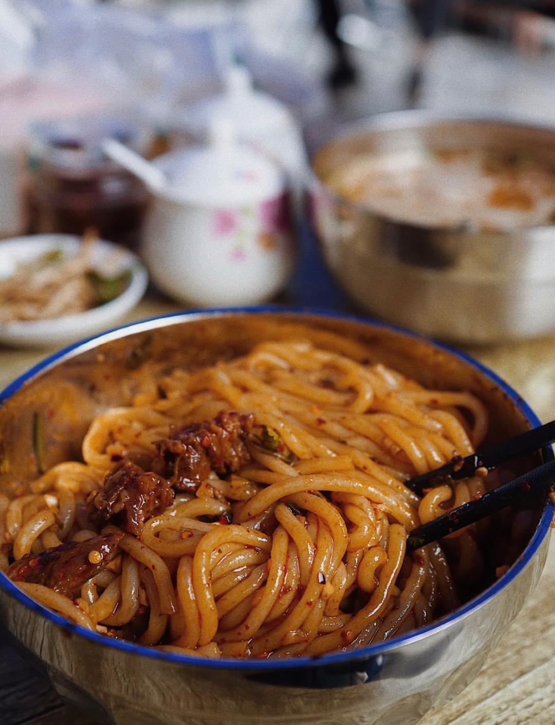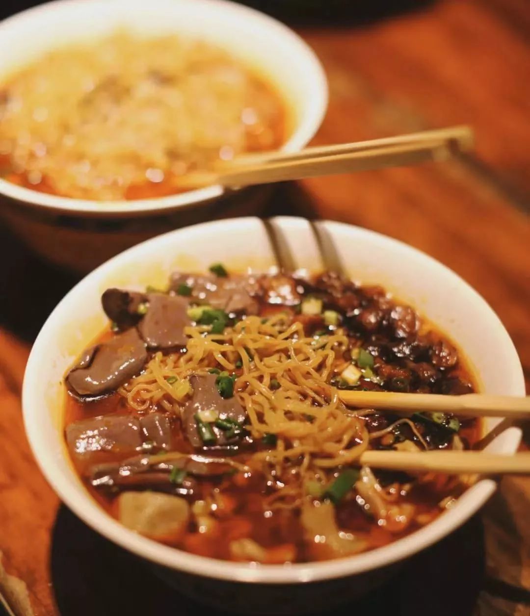 夜里踩着青石板路,打卡一家肠旺面店,红油青葱,安逸得很。