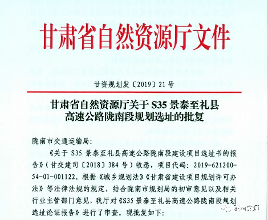 截至目前,项目规划选址意见书和用地预审意见已获甘肃省自然资源厅批复,甘肃省交通运输厅出具行业审查意见,社会稳定性评价报告已经市政法委备案。至此,可研审批前置要件已全部办结。