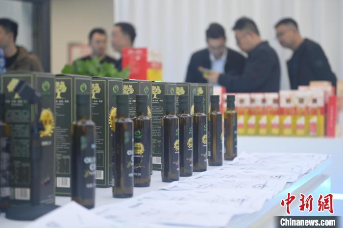 2024年11月3日,甘肃省陇南市武都区一橄榄油产品展区内,顾客挑选橄榄油产品。李亚龙 摄