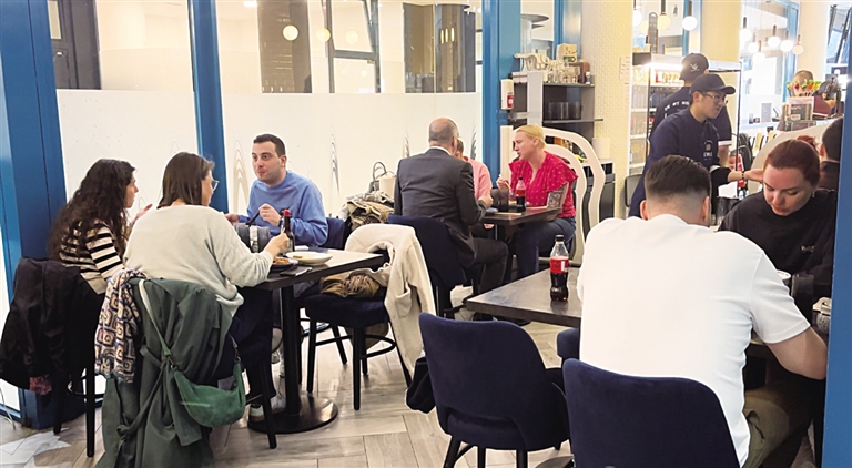 除了像小王这样怀念家乡美食的海外游子,兰州牛肉拉面也被许多法国友人“种草”。Luca DI GIUSEPPE就是Oh My Noodle的常客,在附近工作的他每周至少会来一次。对他而言,Oh My Noodle的兰州牛肉拉面不管是在食材选用还是口味把控方面都做得很好,越吃越爱吃。通过店员的介绍,他了解到兰州牛肉拉面是一款风靡中国的特色美食,也让他对中国美食文化有了进一步的认识。