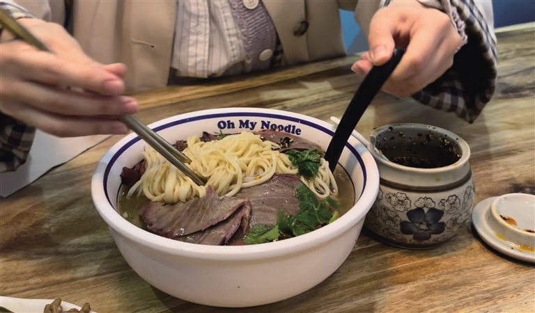 自2020年以来,兰州牛肉拉面产业供应链项目吸引了面粉、调料、牛肉、菜籽油、厨房设备等企业与人才入驻,进一步夯实了兰州牛肉拉面“打包”出海的基础,也为像Oh My Noodle这样的海外兰州牛肉拉面店提供了坚强的后盾。得益于兰州陈作林陈记牛肉面的技术支持,从选材到烹饪,Oh My Noodle完美还原了地道兰州牛肉拉面的味道。在面型选择上,从毛细到大宽,拉面师傅都能信手拈来,让法国食客在品尝兰州牛肉拉面美味的同时,还能大饱眼福,一览兰州牛肉拉面神奇的“掌上功夫”。