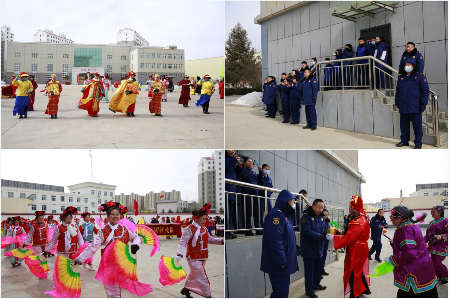“春回大地千山秀,日暖神州万木荣”。2月6日,农历正月初九,固原支队机关院内锣鼓喧天、鞭炮齐鸣、热闹非凡,一派佳节喜庆之景。固原市原州区萧关艺术团走进固原支队进行社火表演,敲起锣鼓、扭起秧歌,用别开生面的表演给全体消防救援人员献上节日的祝福,全体指战员兴高采烈地观看社火表演。