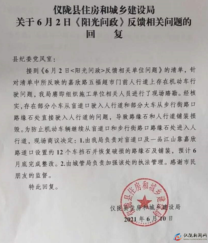 关于回复2021年6月2日《阳光问政》