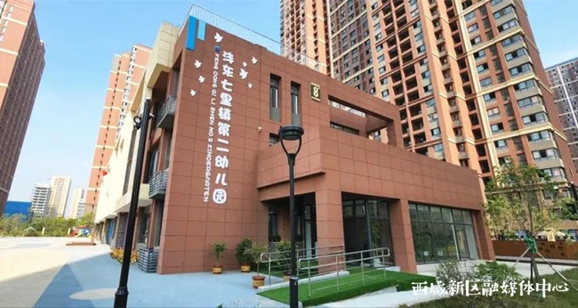 幼儿园位于西咸新区沣东新城七里镇第二小区内,占地面积6052平方米,主体建筑为三层框架结构,建筑面积4841平方米,共设置12个教学班,可提供学位360个。