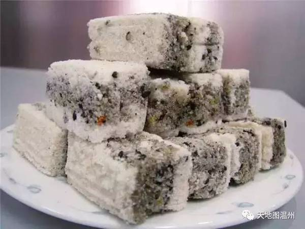 茯苓糕早年叫“潮糕”,瑞安糕点师傅高长发始制于晚清时期,至今已有100多年历史,是瑞安特有的一种糕点。