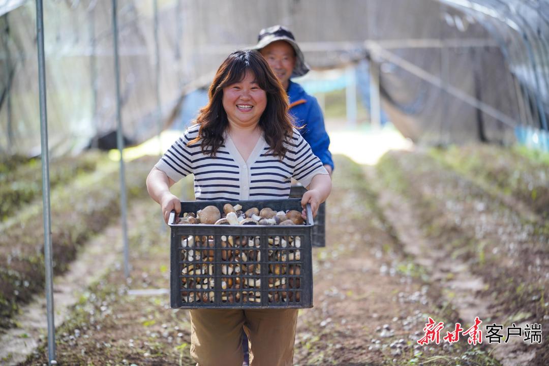 走进建村赤松茸种植大棚,工人们正忙着采摘、搬运,一派丰收景象。