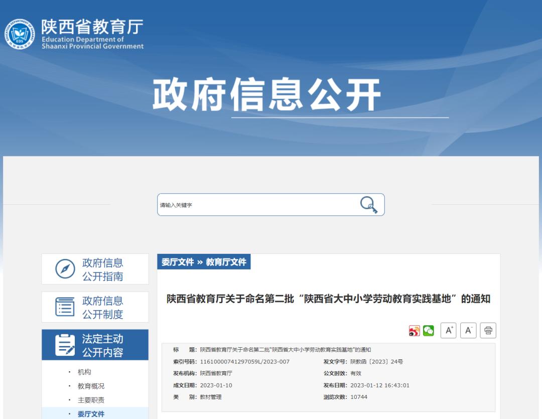 为扎实推进全省大中小学劳动教育实践基地建设,加快构建德智体美劳全面培养的教育体系,省教育厅组织开展了第二批陕西省大中小学劳动教育实践基地创建评选工作。在各地各高校推荐的基础上,经专家评审、厅务会研究,省教育厅决定命名第二批“陕西省大中小学劳动教育实践基地”41个。