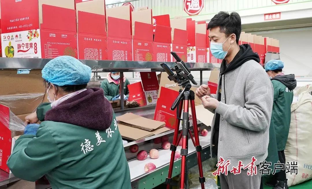 主播直播带货,线上销售静宁苹果。