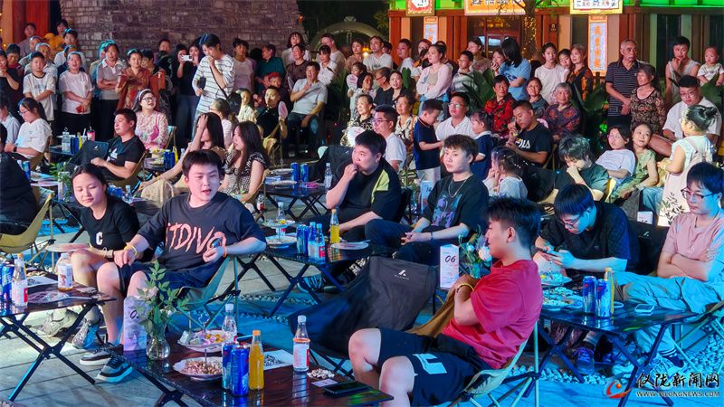 夜幕降临,红线里婚恋艺术街区变身“不夜城”。当“大西门乐队”激昂的旋律响起,台下游客跟着节奏挥舞手机;此起彼伏的欢呼声与动感节奏交织碰撞,璀璨的手机光束汇成星海,将节日的欢乐氛围推向顶点,让整个街区沉浸在热烈欢腾的海洋之中。