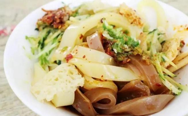 张掖的夏天,不能没有鱼儿粉。虽然在张掖熙熙攘攘的小吃街上各色美食比比皆是,但鱼儿粉一定能在其中占有一席之地。炎热的夏日里它可算得上最开胃的小吃了。用精细的蚕豆淀粉制成,它形似一条条白色小鱼,配上调料、芹菜,吃的时候吸溜一口,连带着汤汁送进嘴巴里,酸酸辣辣,消暑又解腻。