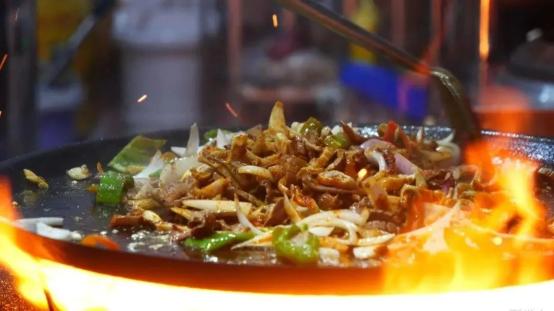 炒拨拉是张掖山丹最具特色的地方美食,也是河西走廊最富悠久历史的特色小吃。相传,炒拨拉的诞生与西汉名将霍去病有着不解之缘。公元前121年,霍去病在焉支山下大破匈奴,战后的庆功宴上,下令杀牛宰羊犒赏三军,因锅灶食材不够,一小兵索性把盾牌翻过来,置于大火之上,将羊肉、羊杂一顿猛炒,随之香味四溢。士兵们一拥而上折了芨芨草当筷子大快朵颐,火焰跳跃间,不仅映照出战场的荣耀,更孕育了炒拨拉这道佳肴。那时的烟火,仿佛在诉说着胜利的喜悦与战士们的豪情。后来这种烹饪方式渐渐被当地百姓学会并加以改良,以牛杂、羊杂为主要食材,放在铁鏊子上炒制,山丹炒拨拉由此而来。