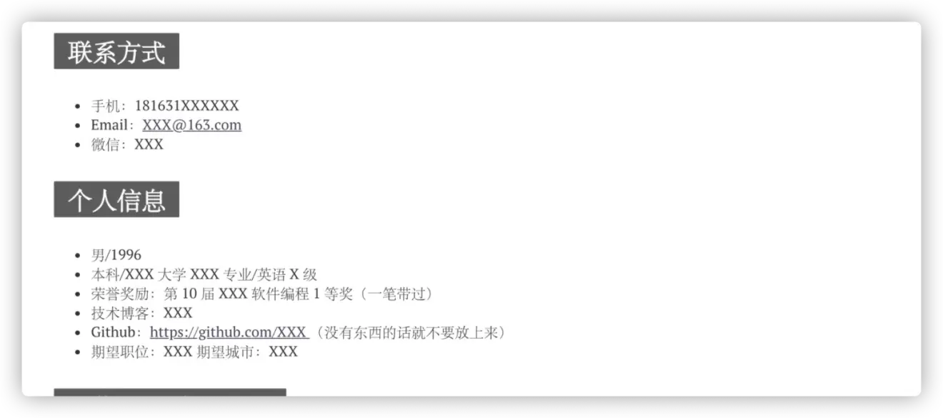 技术博客、GitHub 以及在校获奖经历的话,能写就尽量写在这里。 你可以参考下面 👇 的模板进行修改: