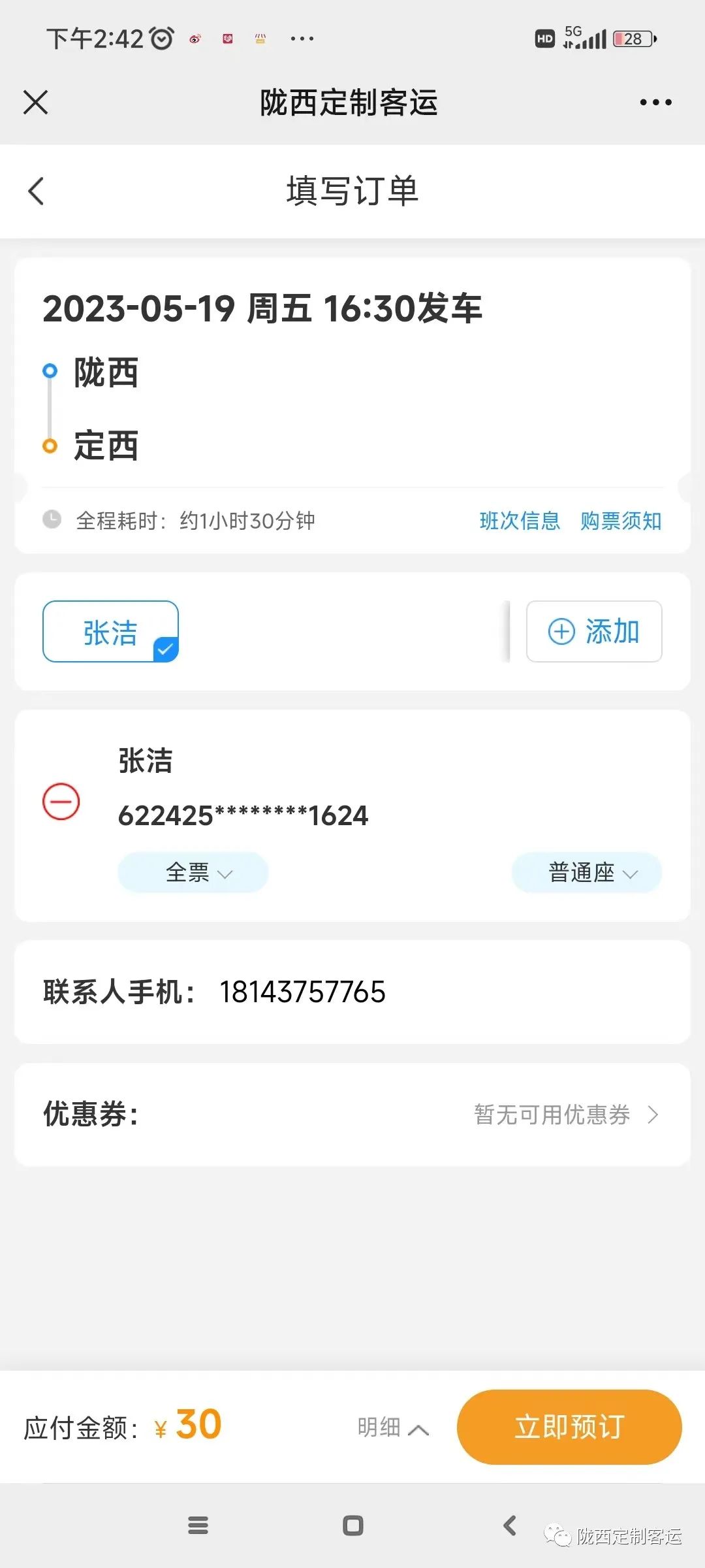 二、选择上车点和下车点,乘车点不同时间也不同,乘车时间以乘车点时间为准,添加乘车人,确认无误后支付订单,等待乘车即可。