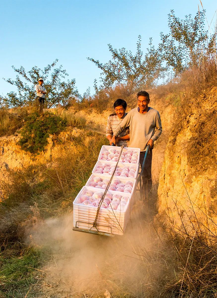 想要看到更壮观的“苹果山”,还可以再往北去,礼县连同天水、平凉、庆阳等陇东南之地,这里的土壤、气候、温差、日照、降雨等等,无不契合苹果生长的“心意”。没错,陇东南正是全国苹果的最佳适生区。每到九月末十月初,田地、仓库、货车里,到处上演着苹果的接力狂欢。