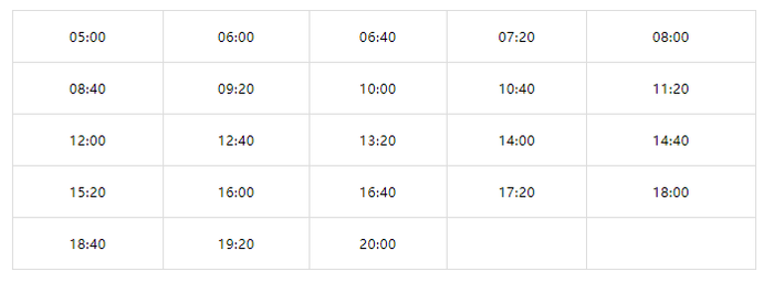 ★发车间隔:05:00为首班,6:00-20:00:40分钟/班,客满即发