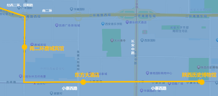★运行线路:陕西历史博物馆—东方大酒店(朱雀南路与小寨西路十字东北角)—南二环唐城宾馆——机场