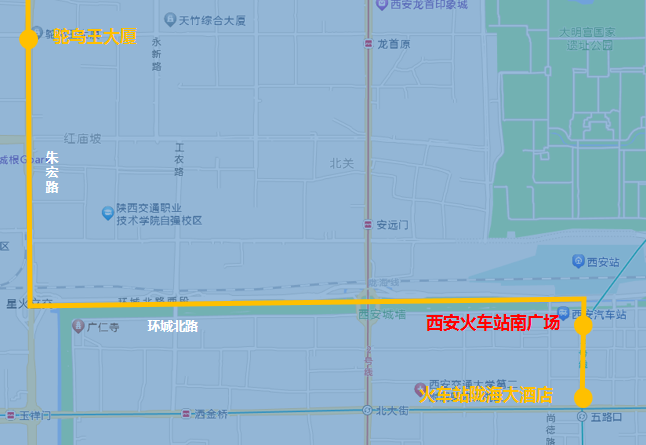 龙首村:陕西省西安市莲湖区未央路火车站南广场:西安市新城区环城北路44号西安站火车站陇海大酒店:西安市新城区解放路306号