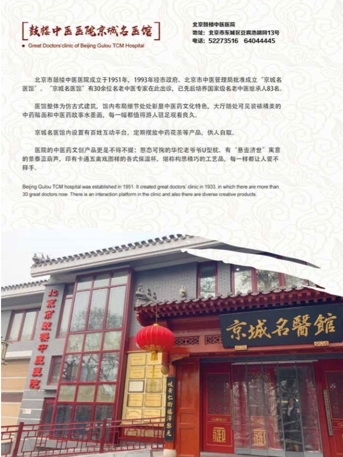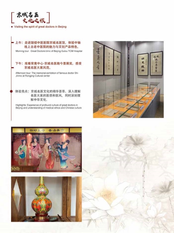 上午:走进鼓楼中医医院京城名医馆,体验中轴线上古老中医院的魅力与文创产品特色。