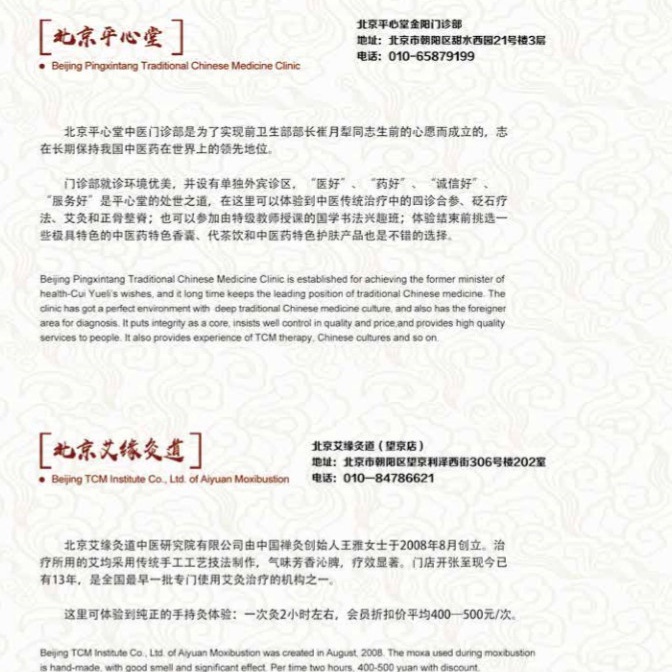下午:前往北京艾缘灸道,感受传统艾灸的神奇与魅力。