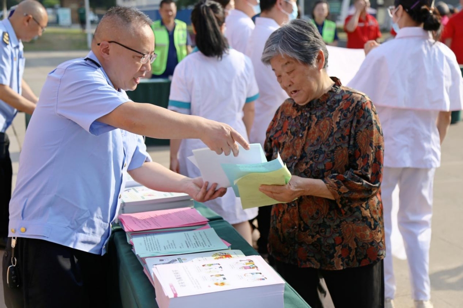 工作人员向群众发放宣传单资料 图片来源:仪陇县市场监管局