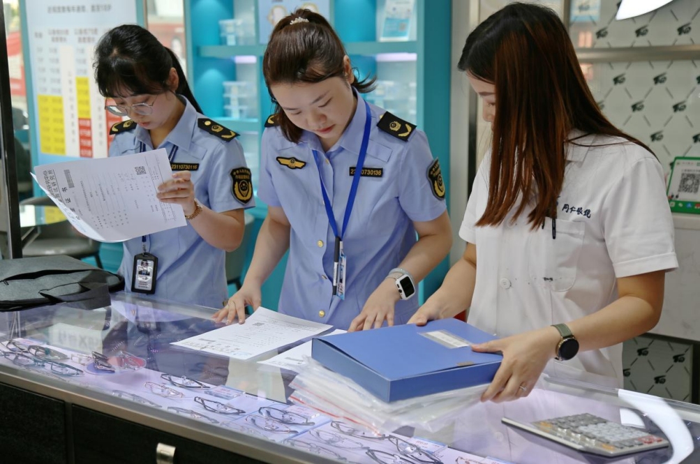 执法人员检查相关台账 图片来源:仪陇县市场监管局