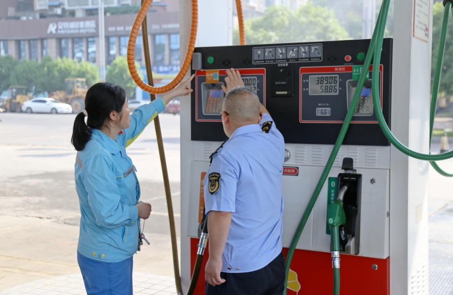 执法人员检查加油站 图片来源:仪陇县市场监管局