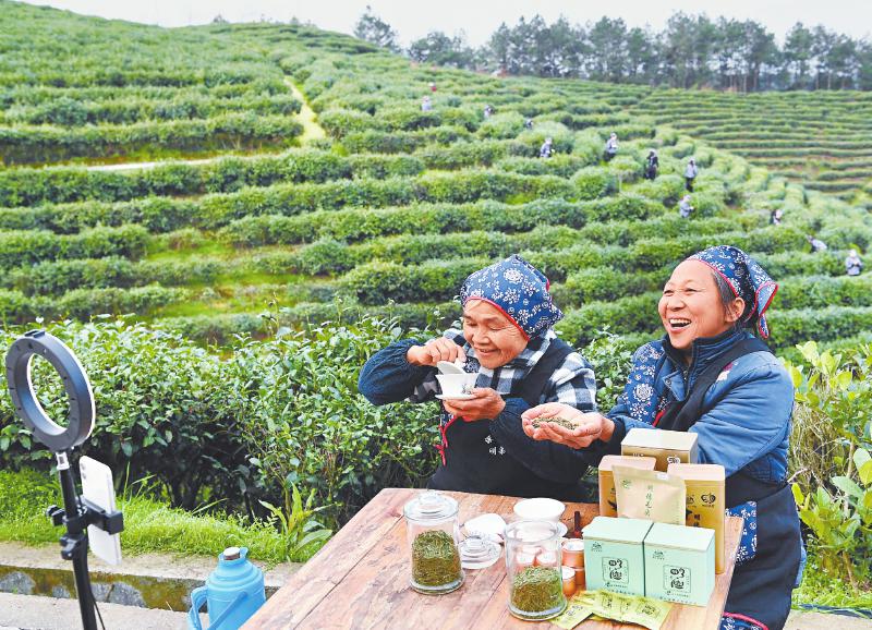 南充市营山县明德乡,茶农在茶园里当起了主播。吴小蓉 摄(C视觉)