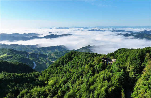 夏日,无疑是四季中最美的时节。年均12℃的清凉气温与超过90%的植被覆盖率,让这里成为天然的避暑天堂。6.3万亩森林宛如巨型加湿器,每日蒸腾水汽,在山谷间凝结成缥缈云雾。清晨,第一缕阳光穿透云层,金色的光芒洒在主峰之巅,云海在脚下翻涌,恍若置身仙境;午后,山雨骤至,雨滴敲打竹叶的脆响与松涛共鸣,云雾在山腰间翻滚升腾;傍晚,夕阳为群山镀上金边,晚霞与归鸟共同勾勒出流动的画卷。