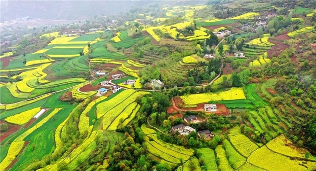 成县深厚的历史底蕴与鸡峰山的自然风光相互映衬,仿佛天工妙笔绘就的瑰丽长卷,每一处细节都流淌着时光的故事与自然的诗意。古代的车马虽已消逝在历史长河中,但仿佛仍能听见那阵阵马蹄声;悠悠南河水依傍山脚,在平畴间潺潺流淌。波光碎影中,两岸丘陵渐趋平缓,万亩庄稼郁郁葱葱。核桃树穗花随风摇曳,油菜花、牡丹、芍药等花卉次第绽放,蜂飞蝶舞,尽显勃勃生机。