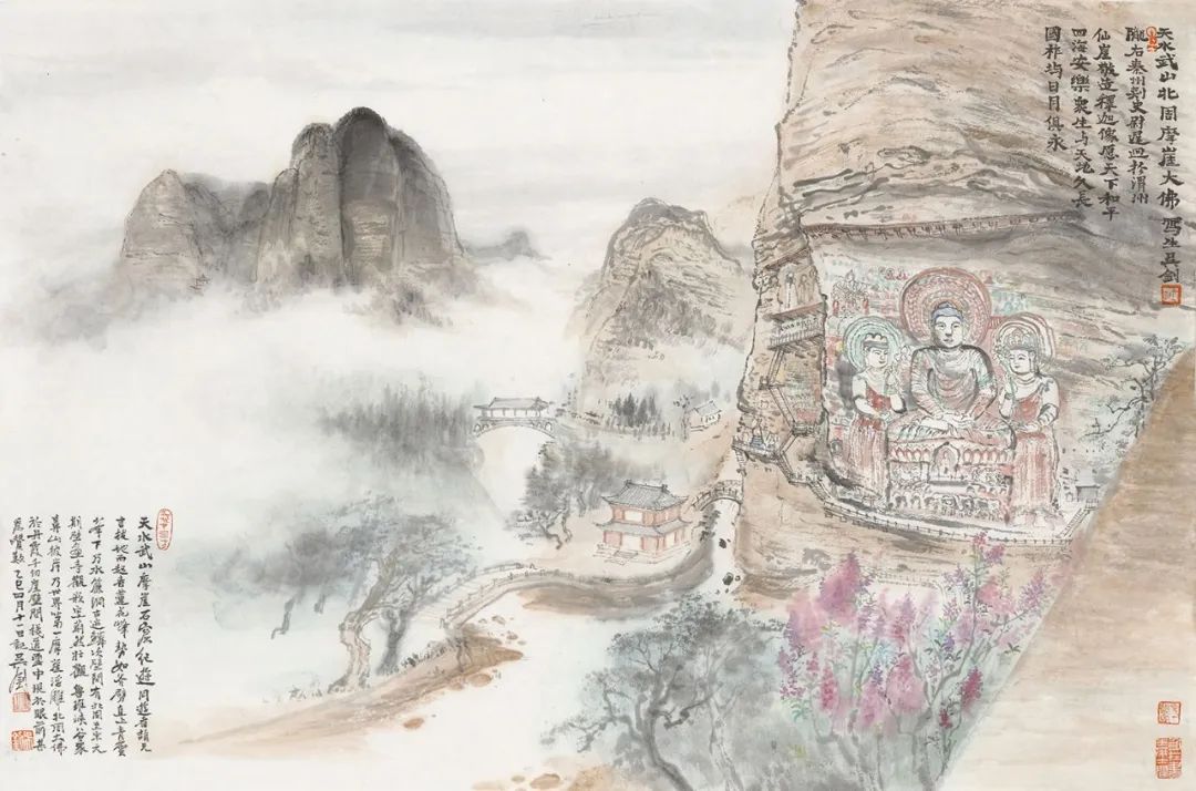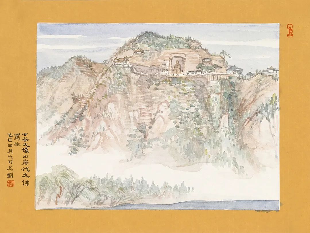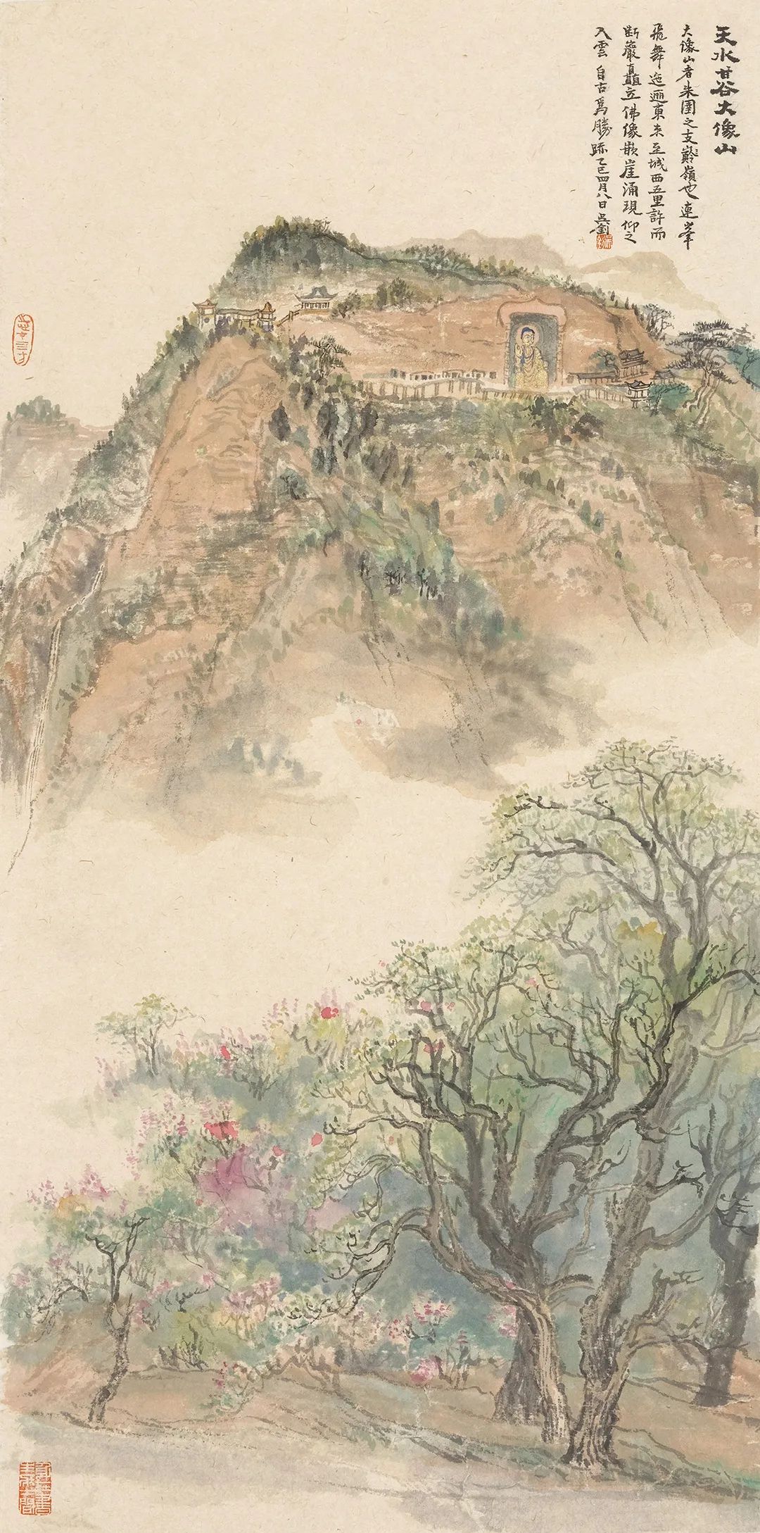 甘谷名胜大像山-绢本设色-33x25cm-2025