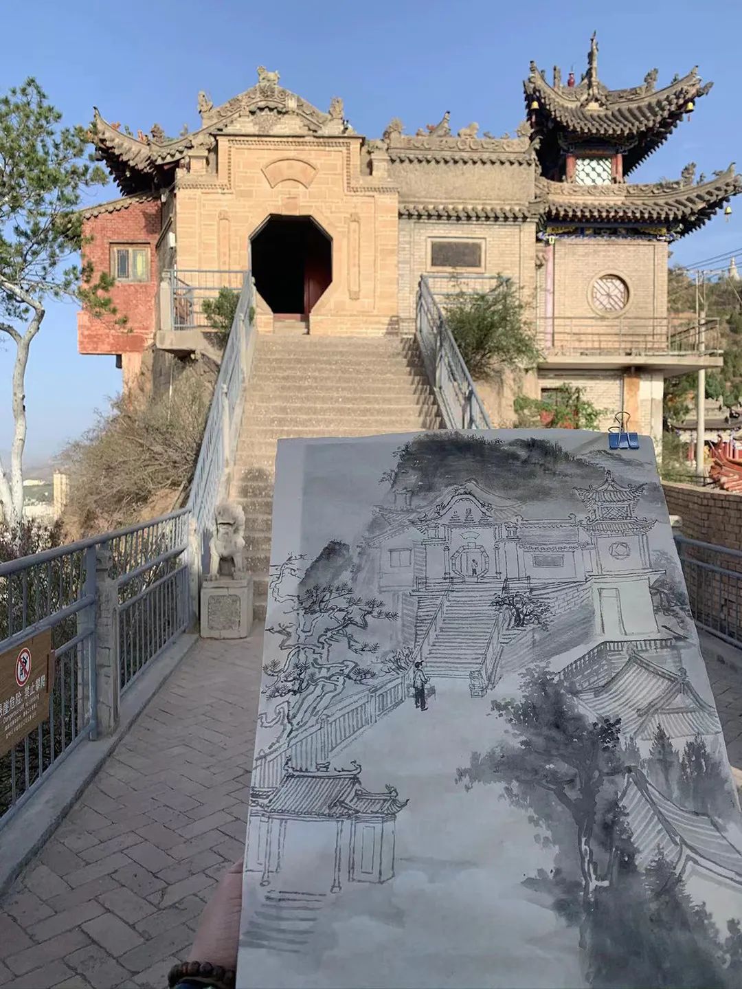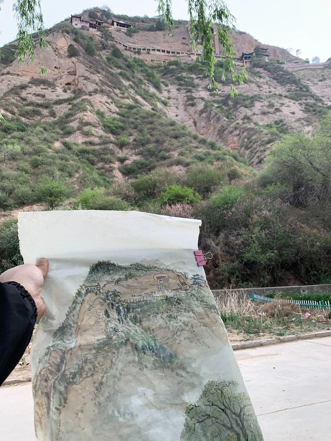 大像山北襟渭水,南枕朱圉,成纪雄封过的汉阳旧郡,凭吊多闲情,适合写生,名胜古迹让画多一层隔世韵味。