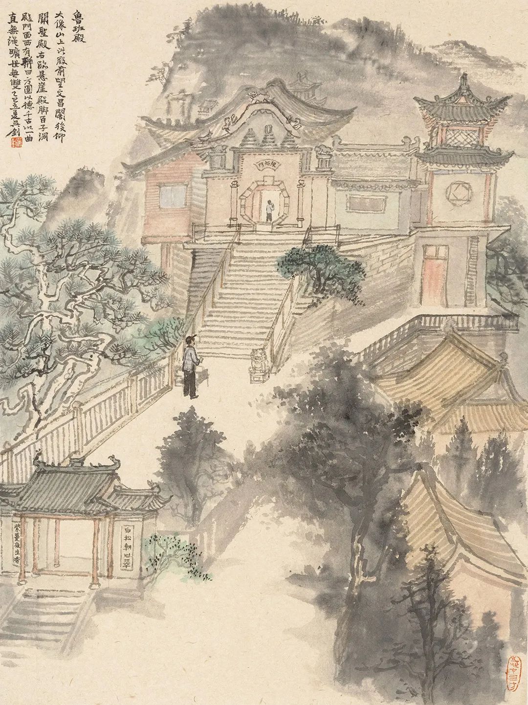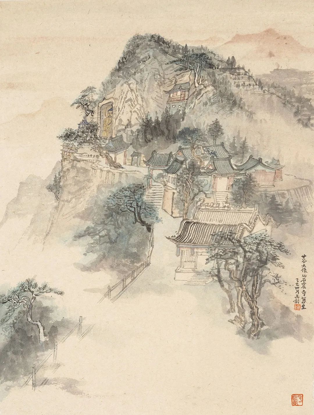 财神殿望石窟寺-纸本设色-46x35cm-2025