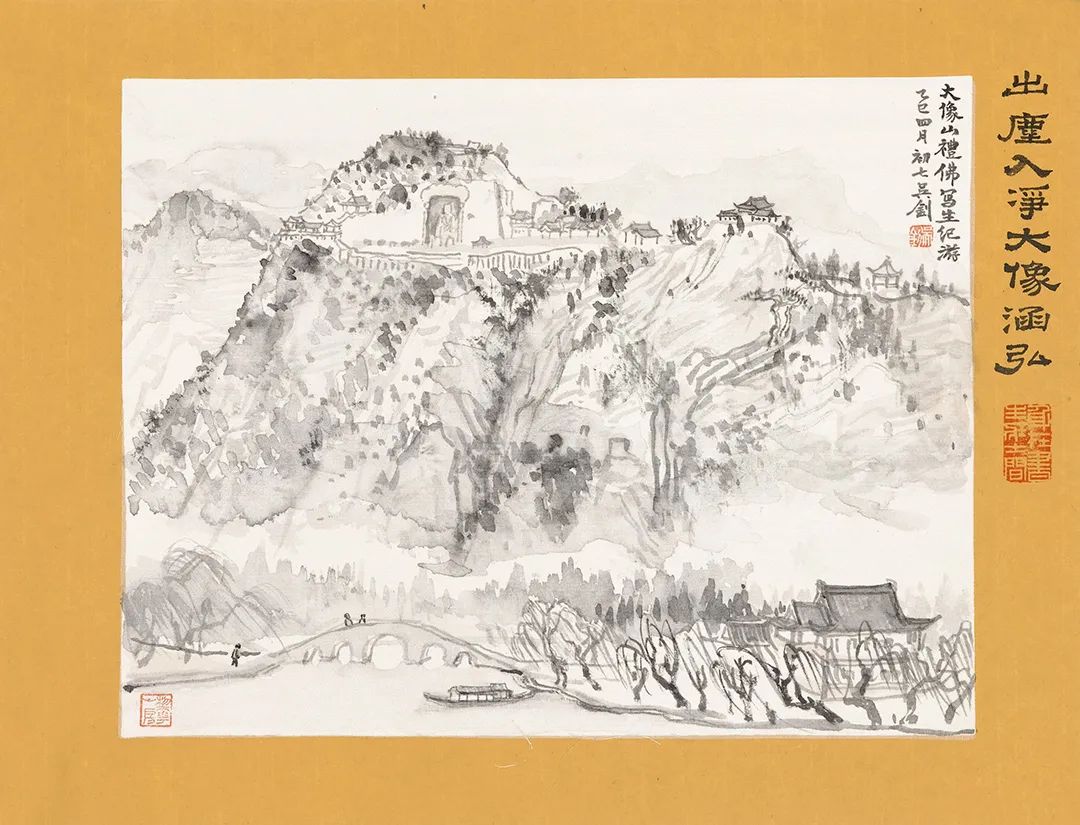大像山有著名丝路上的唐代大佛,嵌崖涌现,千百年来,望着被山遗忘的年轻人影,红尘嚣嚣,暂借静域写生入画图。