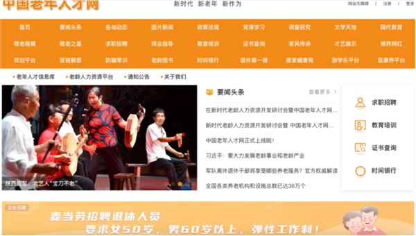 为适应不同年龄段的阅读需求,中国老年人才网在首页右上角设置了无障碍浏览按钮,可任意放大字号,还可以使用读屏功能,为老年网友提供个性化的阅读需求。