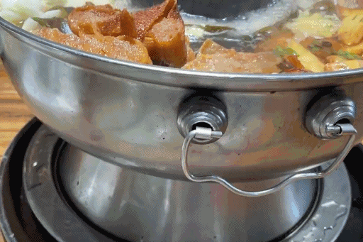 形似火锅,又与火锅不同,烧炭的铜锅,煮着品种繁多的菜和肉,在冬天里一家人围坐,吃着咕嘟咕嘟冒着热气的暖锅,美味和亲情都在这一锅热气腾腾里了。