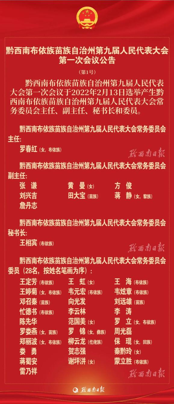 罗春红,女,布依族,1967年2月生,在职大学,中共党员。现任黔西南州第九届人民代表大会常务委员会主任、党组书记。