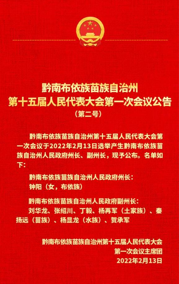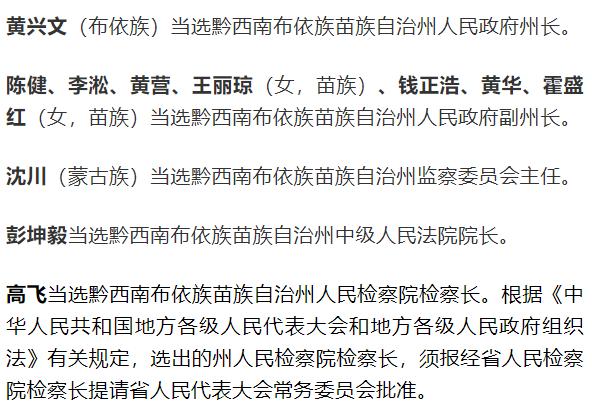 黔南州新一届政府领导班子及监委、法检两院主要领导选举产生(附简历)