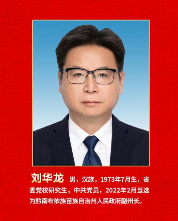 黄 华,男,汉族,1973年6月生,大学,工程硕士,中共党员。现任黔西南州政府副州长、党组成员。