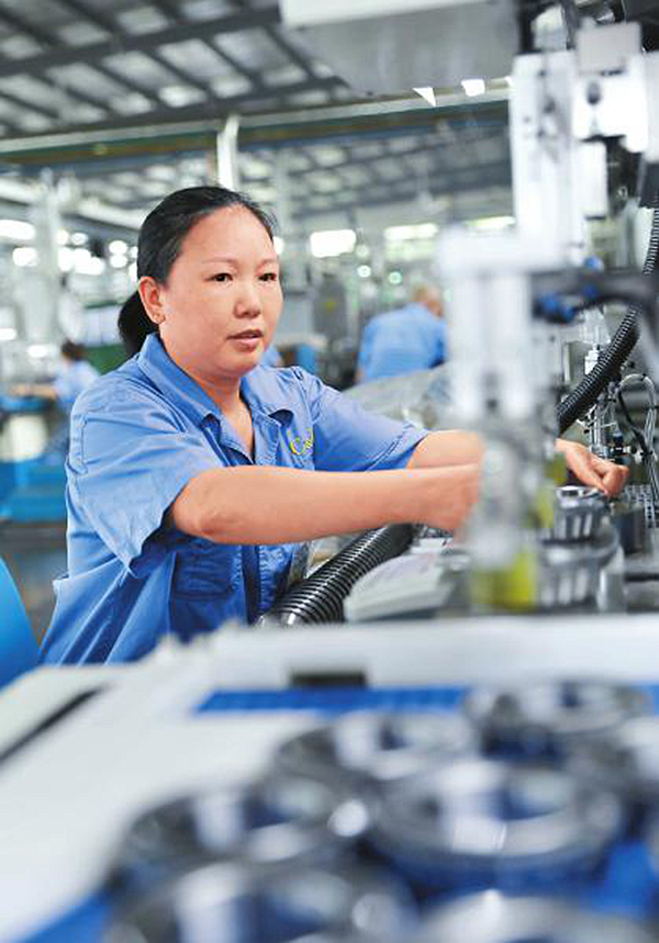 7月12日,位于南充市的四川人本轴承有限公司生产线上,工人忙着加工零件。黎涛 摄(视觉四川)