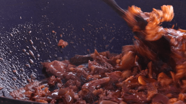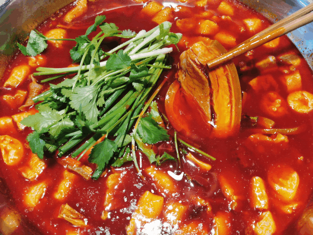 滑滑的水面加上煳辣壳儿,还有五花肉,酱汁十足,火辣过瘾,唇齿留香,吃一口就停不下来!