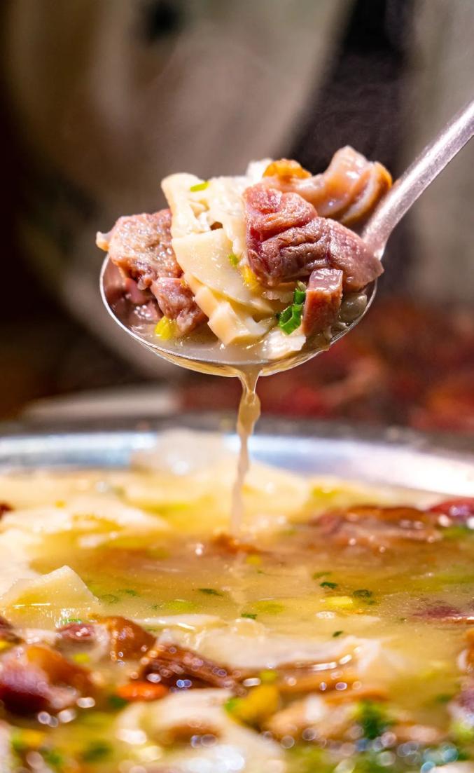 习水麻羊火锅精选习水本地麻羊,羊肉绵软鲜香、不腻不膻,红汤鲜艳,鲜香四溢,是习水人日常餐桌上的必吃佳肴。