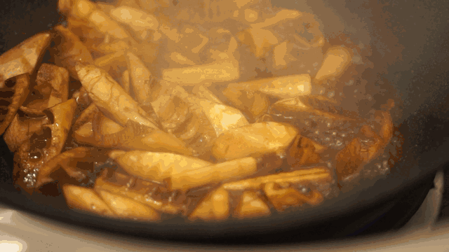 竹笋红烧肉,是比较重口味的一种吃法,浓油赤酱、肉香浓郁,再搭上嫩口鲜甜的春笋,汤汁拌饭堪称一绝。