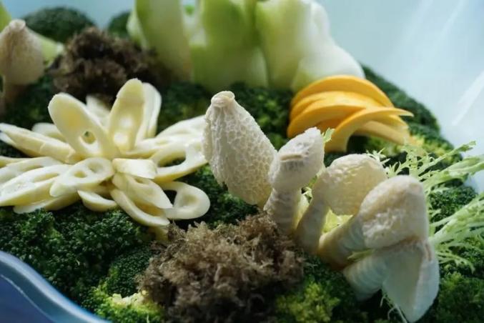 “熊猫宴”主料选用各种竹食品,用竹中的竹笋系列、竹荪、竹鼹、竹鸡、竹燕窝、玉兰片等竹食品,调制成系列美味佳肴,单品可达上百种,复合品可达上千种,佐食竹筒饭,配用竹餐具,多种竹笋组成的菜品不仅口感好,以素食为主,清凉解火,还能达到养生效果……