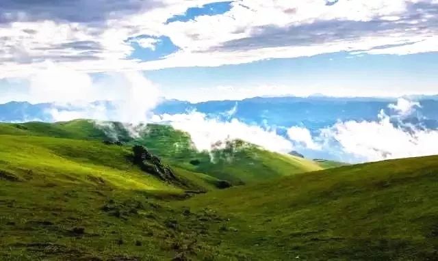 碧草青青,牛羊如云。举目远眺,云海茫茫,群山万重,若隐若现。