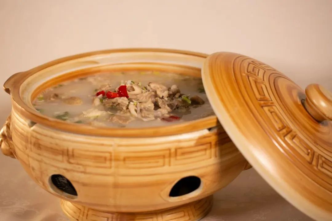 庆阳暖锅:秋冬时节的佳品,底层铺着萝卜片和白菜,中间夹杂着鸡血片、猪肠、香菇等食材,再盖上豆腐片,加入粉条,最上面码放着排骨、丸子等肉类,灌入汤后用木炭加热,一家人围坐食用,温暖又满足。